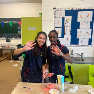 During science week we completed various experiments such as the floating/sinking of peeled and unpeeled oranges, popping a balloon with an orange peel, inflating a balloon using vinegar and baking soda, how soap makes pepper disperse, osmosis with coloured water transferring from one glass to another, how water makes the colours of skittles spread out and finally making oobleck! It was fair to say it got a bit messy in the classroom but a lot of fun was had!