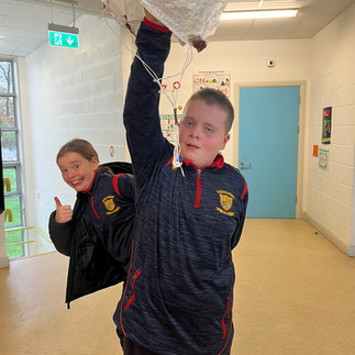 During Science week we also designed parachutes using tissue paper, string and tape for our minature lego figures to jump and land safely on the ground floor!