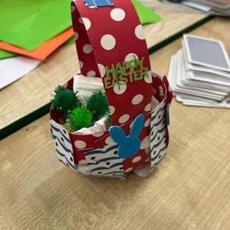 We completed some lovely pieces of artwork in the lead up to Easter, using chalk pastels for an Easter Egg piece and then constructing mini baskets using various colours of paper! We also visited the church with Mr Browne's class to have a Religion lesson based on the Stations of the Cross. It was nice to take the time to look at all of the stations and little details of our wonderful church in Athboy, to go with our many Grow in Love Easter lessons completed throughout the month.