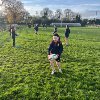 We are lucky to have Tiernan coming in to our school on Thursday mornings for a few weeks to teach us some rugby skills. The children are having great fun completing rugby drills and taking the skills they have learnt into matches!